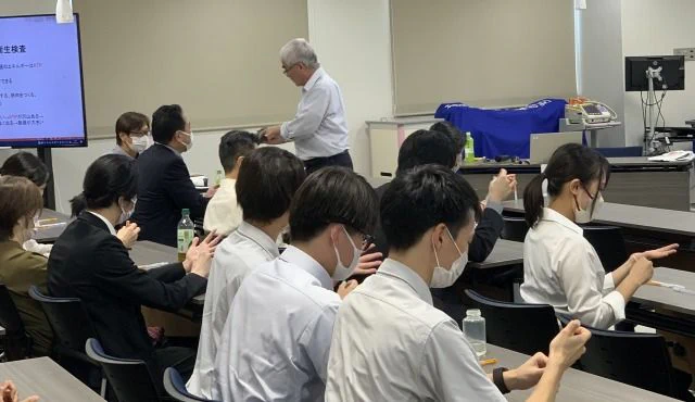 2025年9月13日(土)、熊本医療センターで寺本祐司教授(生物生命学部生物生命学科)が熊本県内の国立病院機構の臨床検査技師協会の方に出前講義を行いました。